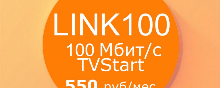 Тарифный план Link100 включает в себя скорость до 100 Мбит/сек и пакет TVStart (до 30 каналов).